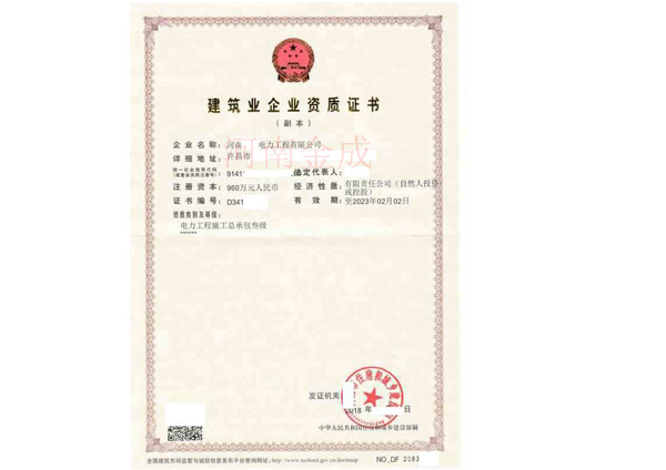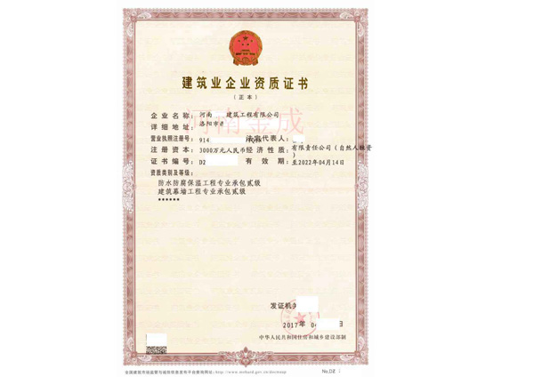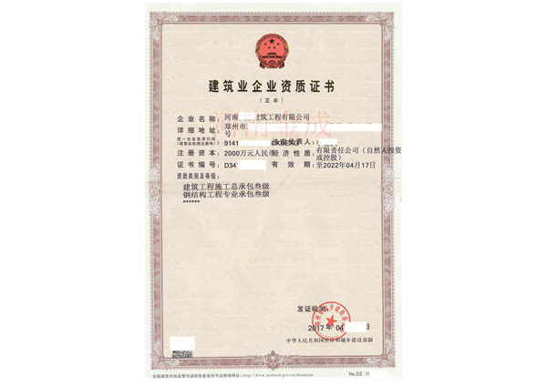 • 建筑業企業資質證書副